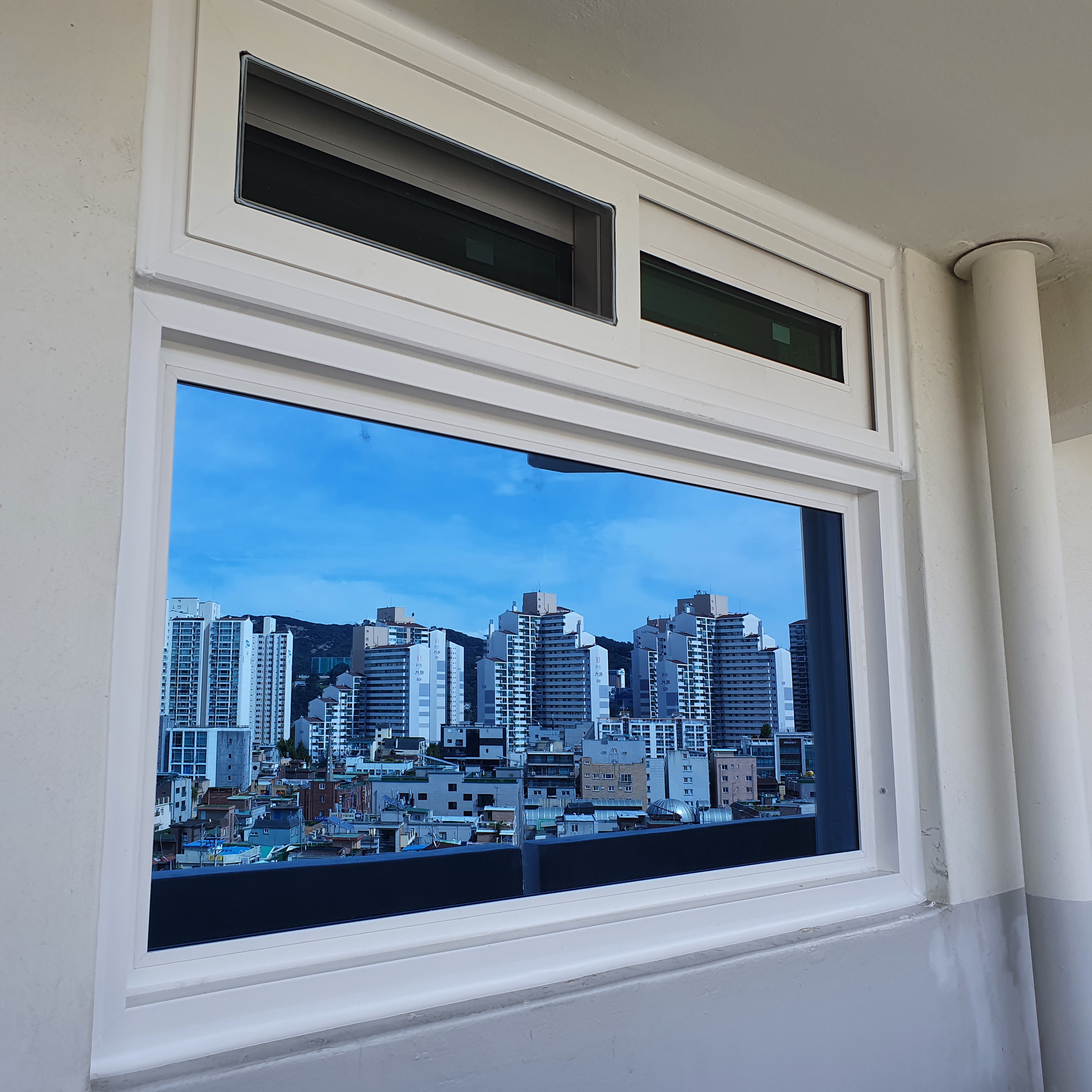 뷰맛집으로 거듭나기 위해 아래는 픽스창으로 하고 환기를 위해 위에만 열리도록 했다.