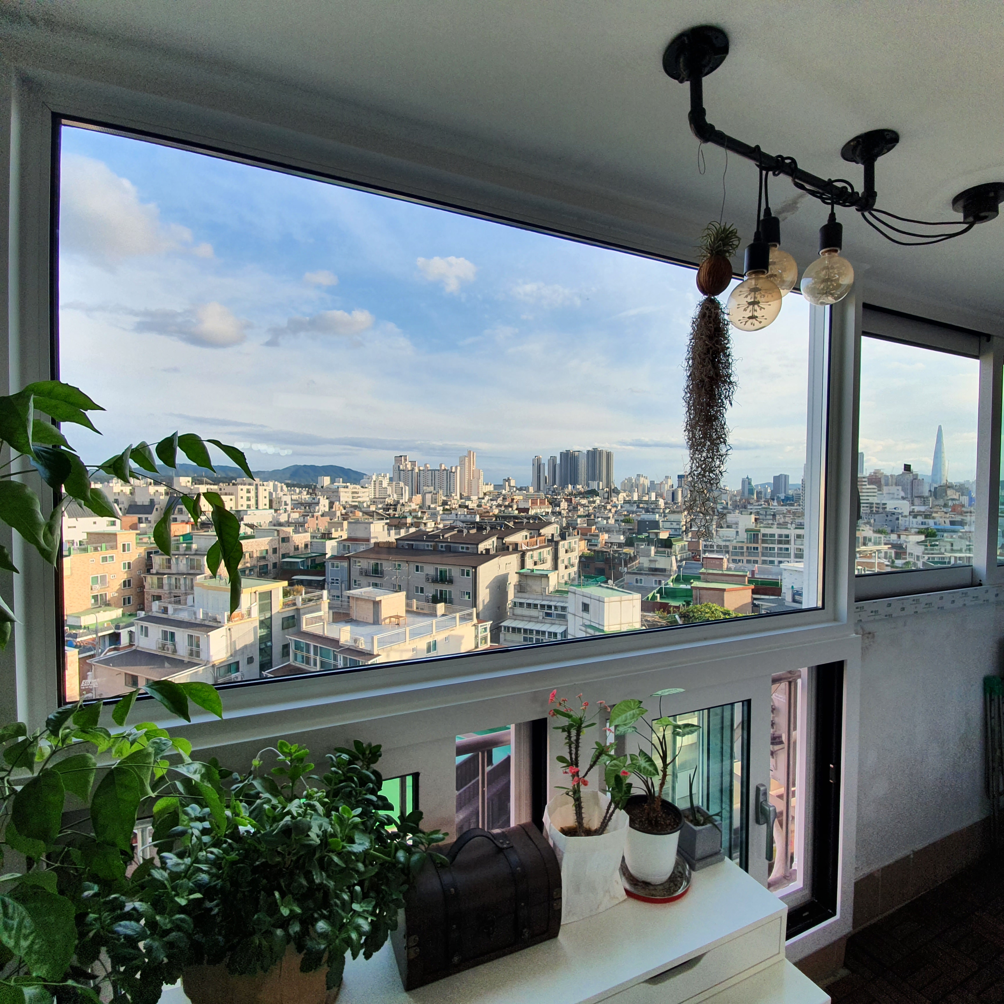 앞뒤로 가리는 건물이 없이 멀리까지 내다 볼 수 있다. 남향인 거실에서는 남한산성까지 볼 수 있으니 말이다. 그래서 집콕과 재택으로 인한 답답함을 해소해 줄 탁 트인 시야를 얻고 싶어 통창을 계획했다.